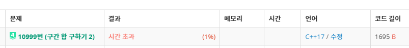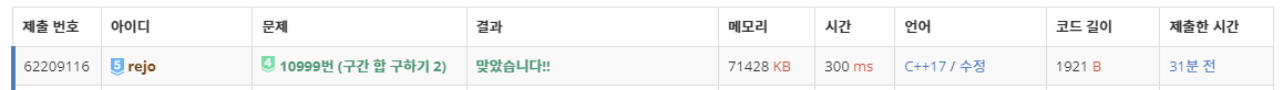 10999번: 구간 합 구하기 2
