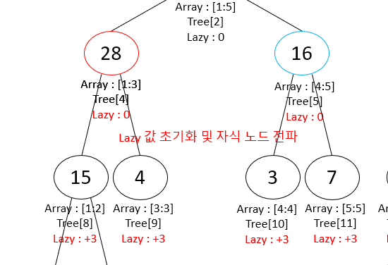 또한, 이 노드에서 lazy 값에 대한 계산을 완료했으니 lazy 값을 0으로 초기화해준다.