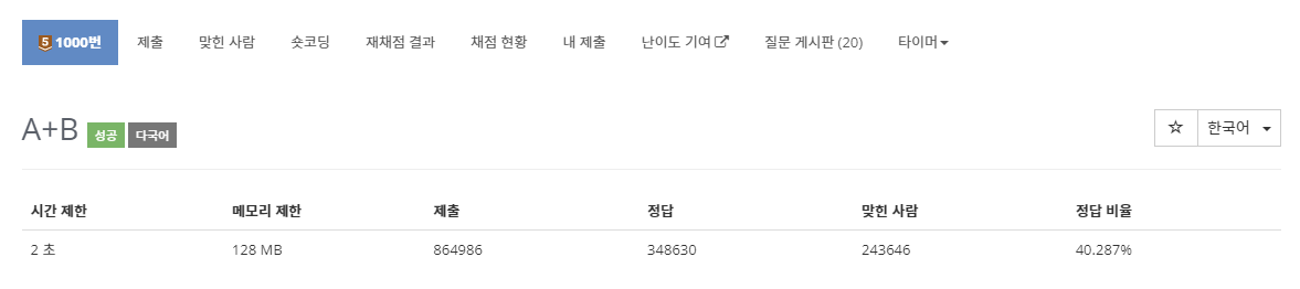 BOJ의 가장 첫 번째 문제이자, 정수 두 개를 입력받고 합을 출력하는 문제이다.