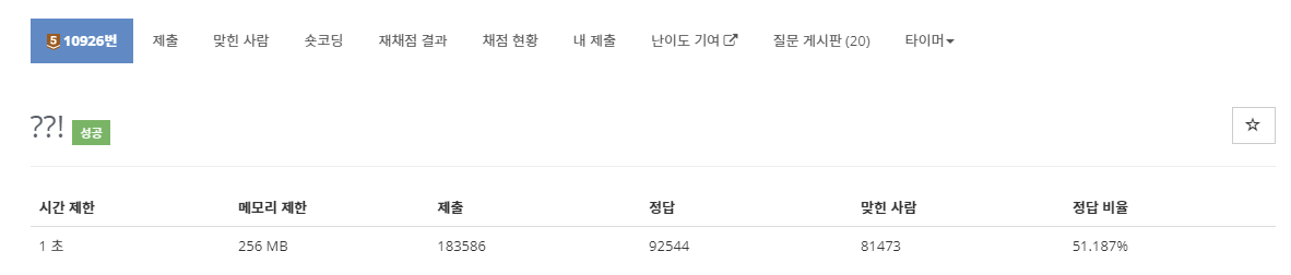 첫째 줄에 준하의 놀람을 출력한다. 놀람은 아이디 뒤에 ??!를 붙여서 나타낸다.