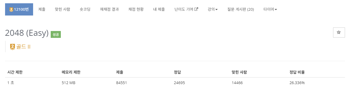 2048 게임은 4×4 크기의 보드에서 혼자 즐기는 재미있는 게임이다. 이 링크를 누르면 게임을 해볼 수 있다.