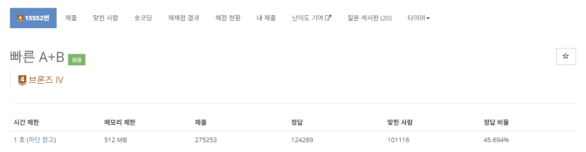 문제에 서술된 대로 빠른 입출력 방법을 사용하여 A+B를 출력하면 된다.
